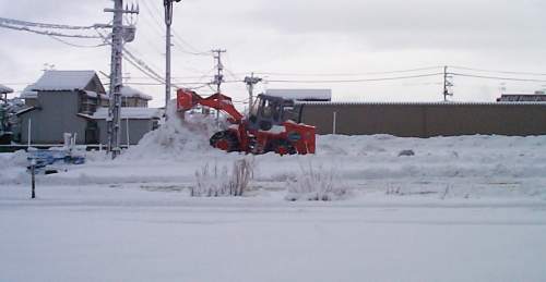 一晩で、約20センチの積雪。除雪車も出動!メダカの本格的な越冬の季節です。