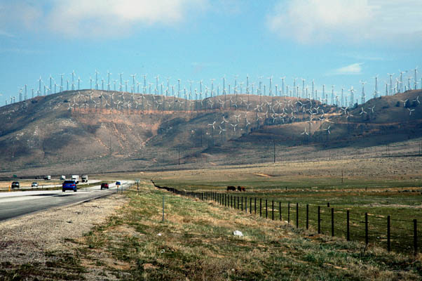 途中、風力発電機の風車が林立している風景があちこちに見られます。