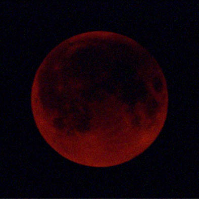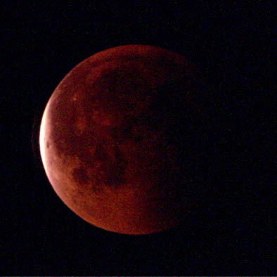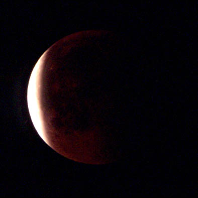 | 22:50 皆既の最大の頃。ど真ん中らしく一様に暗い! | 23:20頃 一方が明るさを取り戻してきた。これが普通? |