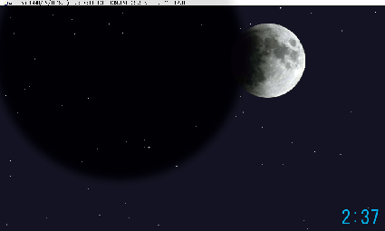 および画面左から右へ動いている地球の影の動きをご覧下さい。