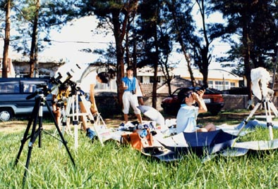 最高の晴天に恵まれ、 観測成功万歳!の図。 いやあー、最高の気分でした。 この半年後、 小笠原で皆既日食の観測にも 成功するわけです。 楽しかったなー。。。。 |