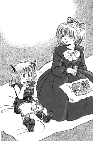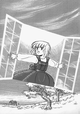 アニメキャラとかの落書きはしていたものの、自分の絵というものは無かった私は、 この時に一気に自分の絵の方向性を作ってしまいました。しかし、そんな、ペンやスクリーントーンの使い方もしらない私に 表紙をやらせるなんて、何を考えていたんでしょうね。(^^;)