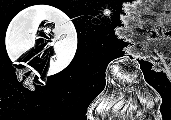 次第に白黒のペン画よりもペタペタ塗るほうに興味を持ってきて、 それに従い、絵もそれ向きに、ペンの使い方も雑になってきました。(^^;)