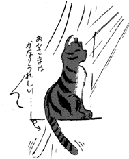 不思議なことに、ネコさんが他の物に気を取られているようでも、 シッポだけはうれしいことに反応して揺れているようです。