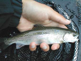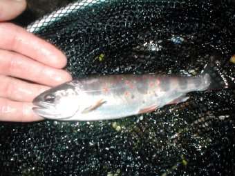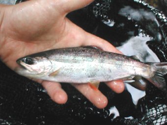 7月13日 この日はH川へ釣行。初めて行く川で、どんな川だろうかと期待と 不安を胸に抱えながらバイクをとばす。風は生暖かく、暑い。本格的な夏はもう すぐそこにきているのが肌でわかる。川は連日から降っていた雨の影響か、水量 が少し増えているようで条件はなかなか。しばらくすると川幅が狭くなり、源流 域近くのあたりでバイクを止め入渓。この支流に魚がいるかどうか分からなかっ たがとりあえずキャスト、あたりがあったがフッキングせず。ここはくもの巣だ らけで、フライがくもの巣に引っ掛かり、気づいたらティペットにたくさんの 「くもの巣コブ」ができていた。イライラが募る。小さな落ち込みでチビヤマメ を数匹ゲット。しかしあまりにも小さすぎる。奥地に入っても釣れるのはチビヤ マメばかり、小さなプールでチビヤマメが何十匹も群れをなしていた。数は釣れ るがでかいのがでない。おそらく最近放流されたヤマメであろう。小さな淵で1 0匹くらいチビヤマメを釣ったあと、雨が降ってきてやむなく竿納。今回の釣行 でもいい写真は撮れなかった。しかも帰ろうとしてバイクに乗るとき、近くの茂 みで唸り声みたいなのを聞き「もしかして熊か!?」と少々ビビり、しばらく様 子をみたが何も姿は見えなかった。そして一目散に退散。ドキドキの釣行でもあ った。ちなみに画像は6月末にT川の源流で釣った本物のネガティブ岩魚。フラ イはビートルで。