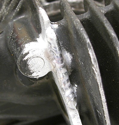 作られたアルミの鋳物、しかもその後ずっと加熱・冷却・振動の繰り返しに耐えてきたものです。きれいなアークで溶かすのは無理