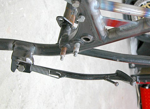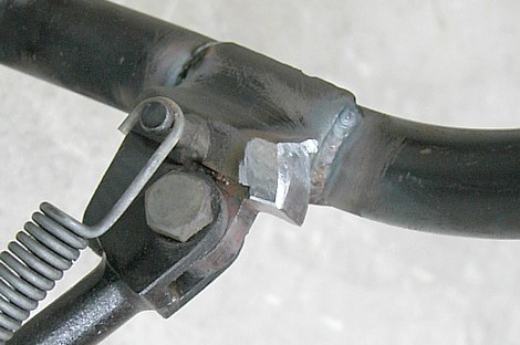 サイドスタンドブラケットの a のところに溶接で大きく肉盛りして、サイドスタンドストッパーを作ります。