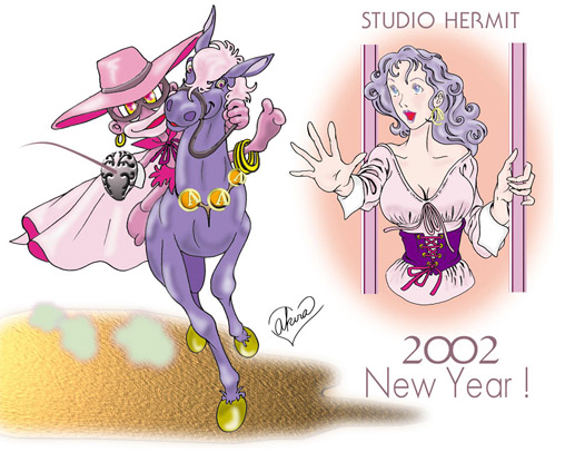 西暦2002年、年賀状カードイラストです。