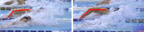 その1 (ロン・ジョンソン) 今回はロンジョンソン氏のフリースタイルの分析を和訳してご紹介いたします。 * * * * * フリースタイルの「フィニッシュ」については昔から変わらず、今でも同様に教えられています。しかし世界のトップスイマーの泳ぎをよく見た後には今までの教え方を考え直さなければならないと感じることでしょう。 1970年代から今日まで、フィニッシュは「最後までかき切りなさい」と教えられ、今でもプールサイドでは「親指が太ももの真ん中をさわるまで、最後までかき切りなさい。」とコーチが選手に声をかけています。 しかしトップスイマーはそういう様に、腕を伸ばしきってフィニッシュしてはいないのです。そしてそれが私には不思議でたまりませんでした。 なぜ私たちが教えられたようにしていないのに「彼らは速い」のかと。 1985年、私がアリゾナ州立大のコーチだったときにカリフォルニア大バークレー校との対抗戦で、あのマット・ビオンディを初めて見ました。最終種目の400ヤードリレーで私のチームのアンカー、Aジェームソンは100ヤードを44.0秒で、当時としてはかなり速いタイムで泳いでいたのですが、当時1年生だったビオンディは並ぶ間もなく彼を抜き去っていきました。42秒後半から43秒前半で泳いでいたに違いません。私はビオンディのコーチ、ノート・ソートンの所に行き「彼は史上最高のスイマーになるかもしれないね」と声をかけたものです。そしてその後の彼が世界最速の男になったのは皆さん知ってのとおりです。 ただそのとき私は「もう少し後ろまでかけばもっと速くなるだろうに・・・・」と思っていました。私には彼が腕を伸ばしきる前に、かき切る前にリカバリーを始めてしまっているように見えたのです。 ![]() 水中でトップスイマーの泳ぎを見るとひじを伸ばしきっていないことがよくわかります。手のひらを「後向き」かつ「上向き」、「外側」に動かしながらフィニッシュしていますが、手は水着の下のところかもっと手前で水から抜けていきます。 ![]() △画像はA.ポポフのフィニッシュを水中から見たところ) ロシアのアレクサンドル・ポポフは非常に早く水から手を抜いているような、フィニッシュが短い印象がありますが、その印象とは逆に他のどの選手よりも少ないストローク数で泳いでいます。(フィニッシュの最後ではひじから先に出て、そのひじも伸びきってはいません) ![]() つづく ※文中の私とはロン・ジョンソン氏のことです。