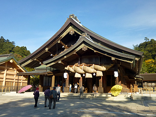 縁結びの神としても親しまれている出雲大社を訪れた。しかし、平日のせいかそれらしい姿はあまり見られない。やはりここも団体客でいっぱい。寂しいが自分もそんなただの観光客の一人(?)