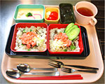 | このいなり寿司は具に紅生姜が刻んで入れてあります。 |
