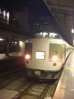 新宿23:54(23:58)−(8421M・快速・ムーンライト信州81号)→4:32松本 松本6:18−(1221M)→7:00姨捨 姨捨7:36−(1533M)→8:03(8:04)長野 長野9:15−(8141D・快速・おいこっと)→11:23津南 津南12:13−(131D)→12:37十日町 十日町13:31−(187D)→13:59越後川口 越後川口14:12−(1738M)→15:46水上 水上15:53−(746M)→16:10沼田 沼田16:25−(9770M・快速・たんばらラベンダー号)→18:46上野 今年の夏も18きっぷが無事発売されたので、さてどこへ行くかと例によって時刻表とにらめっこ。”ムーンライトながら”も”ムーンライト信州81号”もなかなか指定が取れず、これは朝早く出て日帰りとかやるしかないかなあ、と考えていたら、幸い08.01当日の午後に、新宿で確認してもらった”ムーンライト信州81号”の、1席だけ残っていた6号車5Cを確保。ならば、と、08.02の”おいこっと”を確認してもらったらこちらも空席があり、大枠の計画成立です。 新宿駅9番ホームに待っていた”ムーンライト信州81号”は、なんと、”あさま”塗色の189系です。山手線の接続待ちということで4分遅れで発車。買い込んでおいたビールを飲みつつ車内を見回しても、別段6号車に乗客が駆け込んでくることはありませんでした。列車全体に満席のはずなのですが、新宿発車時点ではガラガラ。すぐに検札が回ってきますが、やはり立川までのきっぷを持っていない乗客多数。武蔵境発0:01の2385Tで立川から乗れば、その分安く上げられますし、時刻変更によっては、本来立川発0:26の2361Tが西荻窪発0:01ですから、これでも間に合うかもしれません。国分寺過ぎたあたりからノロノロ運転。前がつかえてる感じでしょうか。国分寺で先行列車を追い抜いた風でもなかったです。立川から多少乗客が増えましたが、座席が埋まるほどでもなく。ここでさらに南武線接続を待って、発車は0:37と8分遅れ。隣におそらくは2305Tと思われる、豊田行が入ってくるのを横目に発車。これとの接続は取りません。 考えてみれば、新宿→立川間を安くあげたいなら、京王線で八王子へ回ればよい訳です。その八王子から相当乗ってきましたが、車内はまだ空席があり、私の席から見える範囲でも2席並びで6AB7ABがまだ空いています。八王子の発車は0:49で9分遅れ。 なんだかんだで2時間弱は寝られました。少し明るくなって定刻に松本到着。ホームに降りると、ちょうど松本電鉄の上高地始発の臨時快速がやって来たのが見えたので、松本電鉄ホームへ回ります。”ムーンライト信州81号”を見送って、松本電鉄の車両を眺めると、なんやら運転台の行先案内にイラストが。イラストはイメージキャラクターのようですが、この案内があったのは上高地に向いた方だけでした。 2011.07.24に、この臨時快速には乗車していますから、今回は乗らずに改札外へ。気温は22℃で、涼しいわけです。では時間もあるし、と、松本城を往復することに。昨日が夏まつりの”松本ぼんぼん”だったため、提灯が残る市内を歩いて松本城へ。松本で何度も乗り換えていながら、この名城を見るのは初めてで、いかに観光と無縁であるかよくわかります。松本駅へ戻り、みどりの窓口で無事”たんばらラベンダー号”のチケットを確保。これで帰路も安楽です。 長野行き1221Mは4両。さすがによく空いていて、1ボックス確保して爆睡。もともと、この区間ではどうせ寝てしまうだろうし、そのまま長野まで行ってもいいや、くらいのつもりだったのですが、うまい具合に姨捨の手前で目が覚めたので、途中下車することに。気温は25℃ですが、日があたるとさすがに暑いですな。少し朝靄のかかった風景を眺め、ついでのことに近くの姨捨公園展望台まで往復して、後続の1533Mに乗車。6両編成ですがこれが全てロングシート車。まあ、ガラガラですしどうでもよいか、という心境ではありましたが、長距離でこれが来ることを考えると、ぞっとしませんなあ。 長野で立食いそばの朝食。”ワイドビューしなの6号”と”リゾートビューふるさと”を見送って、”おいこっと”に乗車。1号車1Aという、2人掛け席の一画を確保しましたが、こちらが千曲川側です。2両とも、2人掛けボックスが千曲川側で、4人掛けボックスは反対側なのですが、これは2両で違えてもよかったんじゃないかなあ。ロングシート部もありますが、こちらはあまりいい席とは言いがたい感じです。 車内案内のテープの声は、現在でいう木島平村身の常田富士男氏によるもので、どうしたって「まんが日本昔ばなし」を思い出します。発車してすぐ、和装のアテンダントがなんと各席に野沢菜を配って歩くというサービス。買い込んで来たもの以外に酒のアテが増えた、というもので、アテンダントは車内販売も扱っていますので、早速1本ビールを追加。なお、アテンダント以外に車掌も同乗しています。 北陸新幹線金沢開業でしなの鉄道北しなの線となった信越本線と別れ、豊野から飯山線へ。飯山で16分の停車。ホームでは記念撮影用の小道具だけではなく、木島平米のおにぎりのふ