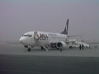 山東省の省都、済南を本拠地とする航空会社です。路線はあまり多くないようですが、主力の北京−済南線は、列車だと6時間ぐらいのところを、1時間で結んでいますので、結構混んでいて、採算は採れているのかな、とも思います。