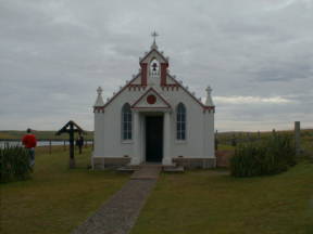 街を抜けて、イタリアンチャペルがある、南の島へ向かう。途中は橋ではなく、コーズウェイという埋め立てをした道でつながっている。道の真中には下に穴があり、潮の流れを妨げないようにはなっているが、橋に比べると予算を抑える為かな、と思う。