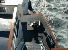 船員らしき若者が、下のデッキでバグパイプの練習をしている。うまくはないが、船の上げる波しぶきの音と、バグパイプの響きは、不思議なハーモニーを醸し出していた。