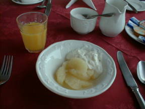 典型的な朝ご飯を食べる。毎日食べているが、もうすぐ食べられなくなると思うとさびしくもなる。
