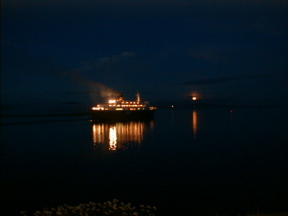 道は延々と続いたが、突然、視界が開けた。ちょうど乗ってきたフェリーがアバディーンへ向けて出港していくところだった。月明かりの中の船は非常に奇麗だった。