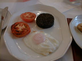 今回最後のスコットランドの朝食と思うと寂しく、頼んだらブラックプディングと目玉焼きも出してくれた。