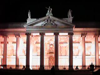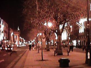 夜のオコンネル通りです。道の真ん中が並木があって、歩けるようになっています。両側はアイルランド銀行の本店のような重厚な建物が並んでいました。