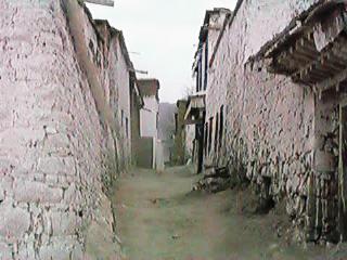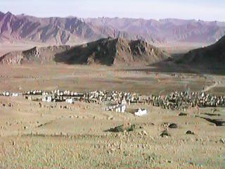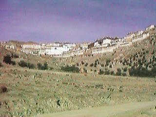 道の途中から見上げたガムデン寺の全景です。ラサ三大寺の一つで、15世紀からの歴史を持ちますが、中国の文化大革命によってことごとく破壊され、最近まで、廃虚のままになっていたそうです。