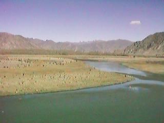 ガムデン寺への道すがらの川のある景色です。
