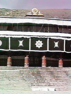 ラサの郊外、約60kmの所にあるお寺です。山の頂上付近に建っているため、山道をこのような景色を見ながら上がっていきます。