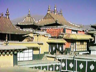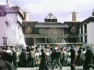 ポタラ宮の屋上です。まばゆいばかりの金色の屋根でした。明るすぎてデジタルカメラでは撮りきれていません。が、どんなカメラを使っても撮りきれる景色ではありまません。空も本当に青々していました。