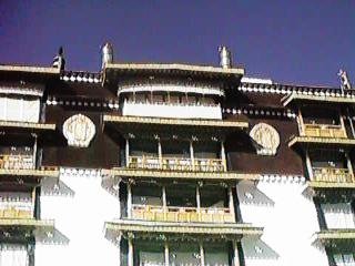 ポタラ宮の内庭からみた上部です。上部の紅宮は宗教的な儀式を行う場所で、歴代のダライラマの遺体が安置されている、大きな黄金の塔には大変圧倒されました。