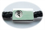純粋・始まりをイメージ。表面を鏡面仕上げにしました。裏面に梵字を刻み、リバーシブルで使用できます。紐は本皮を使用しています。一枚皮から切り出して、丁寧に4つ編みにしています。 |