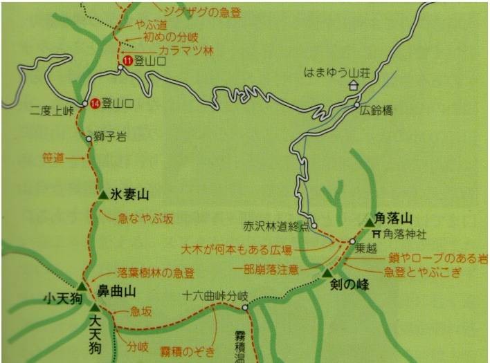二度上峠に車を止め、尾根伝いに氷妻山(ひづまさん)を経由して、約2時間のかかった。