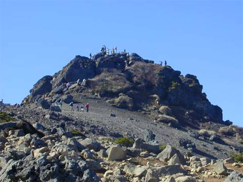 頂上(1700m)は、こんもり盛り上がっており、ここから、くろがね温泉へ下る人やや磐梯山方面に縦走する人などおり混雑していた。