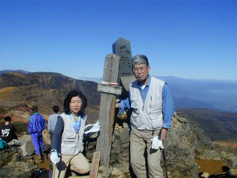 車で、奥岳まで行き、あだたら高原スキー場のゴンドラに乗って、薬師岳から歩き始め約2時間かかって頂上に着いた。