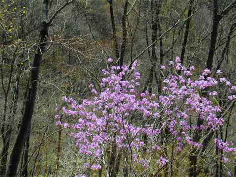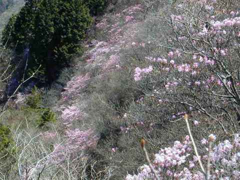 頂上は崖で、おそるおそる眺めると、八潮つつじが見事に咲き乱れていた。