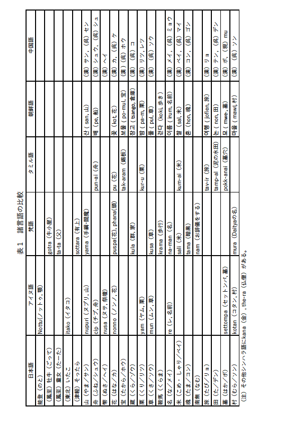 キーワード:アイヌ語・梵語・タミル語・朝鮮語・中国語・稲の伝来・