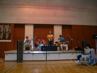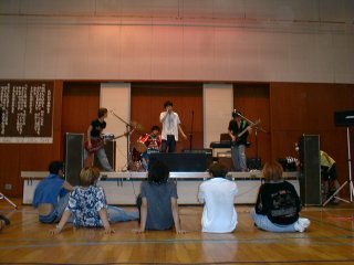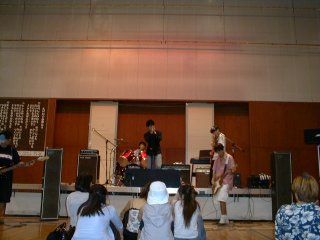 雨が降ってきたので場所を体育館に・・・ 高校生バンドの熱演