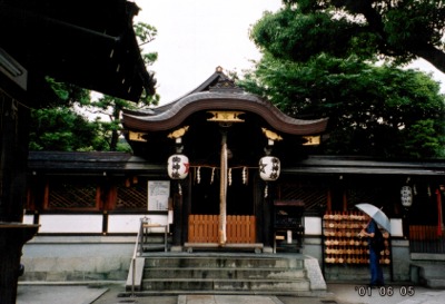 こちらが、正式な神社の鳥居 堀川通りから歩いていけます 右手のほうは現在工事中 何か社務所でも建ててるようです 平成15年に1000年祭があるそうで、その準備中ですね |