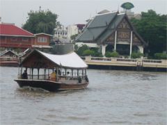 オリエンタルホテルの保養施設 ホテルとは、チャオプラヤー河をはさんだ対岸にあります 専用の渡し舟で対岸に行きます 写真は、スパ施設の入り口 左の階段を上ると、右のドアがあります ここで靴を脱ぎます 胡散臭い、木彫りの置物があちこちにあるんですよね(笑)