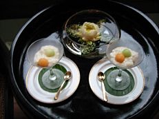スパは、最初にシャワーを浴びたあとに紙のT字帯のような物を身につけるんですが、パパイヤを塗りたくったあとで、シャワーをもう一度浴びる時に脱いじゃうと、あとはもうすっぽんぽんです(笑) まぁ、エステシャンのおねぇさんも、テレもなくさくさくやっちゃうので、抵抗のあるのは最初だけなんでしょうね(笑) さて、仕上げにシャワーを浴びて、服を着て、受付に戻るとデザートをくれました なんだろう、タピオカを潰して餅状にしたみたいなぷにぷにの物の上に果物がのっていました |