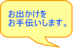 - 乗車前後のお手伝い、乗車・降車における移乗などのお手伝い、お出かけ先での移動に伴うお手伝いをいたします。