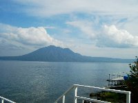 | この日は朝、支笏湖に行って小樽へ。この写真は10:00くらい。札幌はいい天気だったので期待していたが、支笏湖の上空は雲が。でも、風不死岳はここまで姿を現してくれた。 |