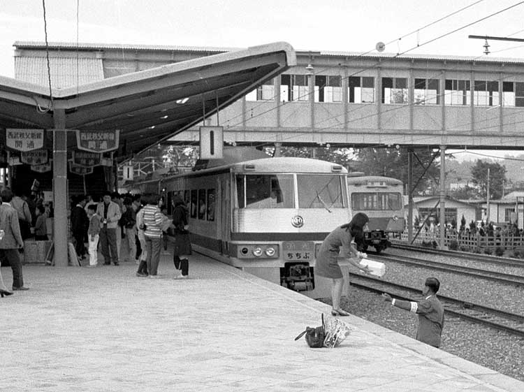 折り返しで、池袋に向けて発車してゆく5000系。開業直後は2編成だったでしょうか?番号の記録はありません。武甲山の山容はどのように変わっているでしょうか?新線区間とはいえ「PCマクラギ」の類は一切、使われていません。時代の差を感じます。そのかわり、板バネを使った弾性締結装置はかなり前から普及していました。