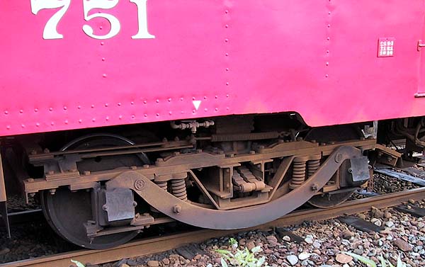 多分、日車製のBW台車と思われる。車体端面と同じような「エンド表示」が大変珍しい!