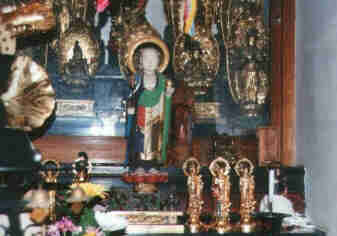 本尊の祭壇左手、不動尊の祭壇に小型で金色の水子地蔵を9体安置している。右手に錫杖を持ち、左手と足下に子どもを配している。依頼者の希望により仏具店に注文したもので、1体7000〜8000円である。