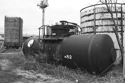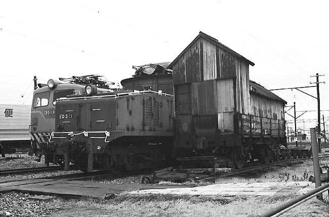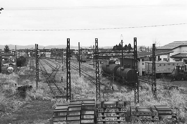 ED401は、1967年東洋工機製。今もなお現役の、相模鉄道のED10形と同スタイル。 凸形電気は、元西武鉄道E32(1956製)。怪しい貨物は、創業時の”ト1形”を油の保管庫として使っていた。 信濃川の堤防から、西長岡構内を望む。