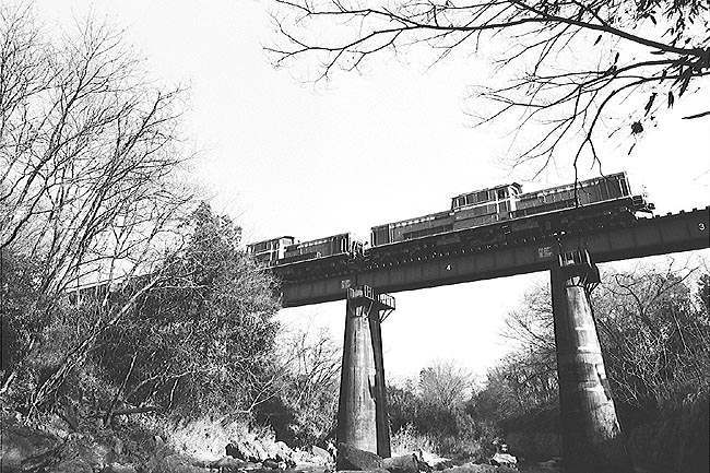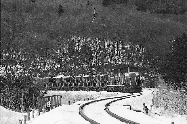 竹沢-折原のS字カーブを行く。雪晴れに、DD51の重連が映えます! 東飯能-金子間の、通称”金子坂”。SL時代から、八高線随一の撮影名所でありました。 竹沢-折原間は、山越えの変化に富んだ区間で、DD51重連を狙う鉄道ファンに人気がありました。