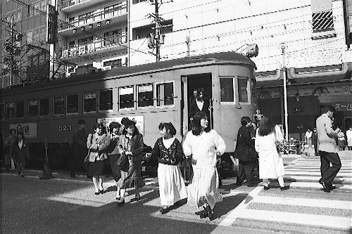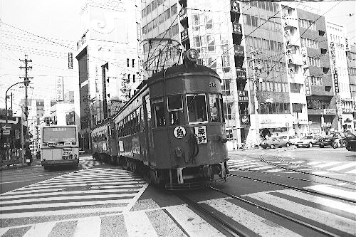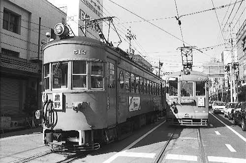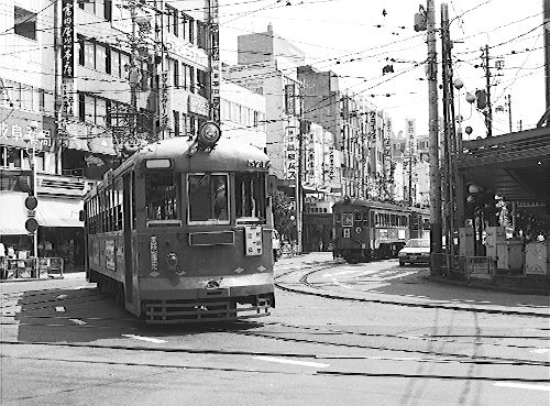 林立するビルの中、大正生まれの電車が日常の光景として走っていたのである。
