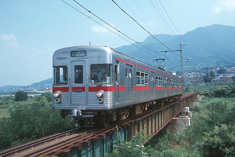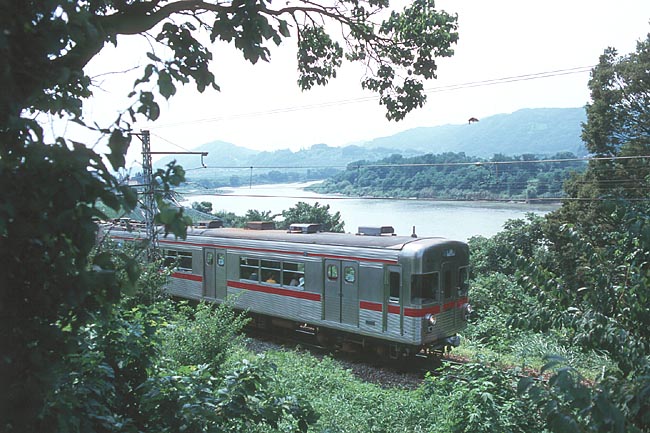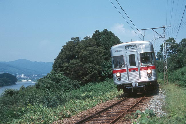 千曲川に最も近い所を走る柳沢-田上間。 夏草に阻まれ、思い通りのアングルで撮影出来なかったのが残念・・・ 対岸には、JR飯山線が走っています。 信濃安田の、田上寄りすぐの所にある、木島線唯一のトンネル。 石積みのトンネル入口は、同線の長い歴史を物語っています。 木島線のハイライト、夜間瀬川橋梁。 雄大な高社山を望む、広大なパノラマは圧巻!