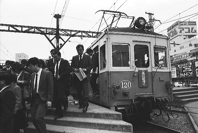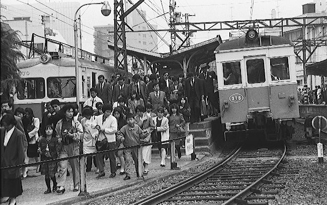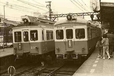 私が瓦町を訪問したのは、1989年3月。 当時高校生であった私は、瓦町の光景に 非常に強い衝撃を受けた。 「電車博物館」とは、これなのか!と・・・ 次から次へと、形の違う電車がやってくる。 リベットだらけの車輌に、バス窓、湘南顔、 楕円プレートを付けた電車だけは、 かろうじて、元々琴電の電車と認識できた。 もうひとつ驚いたことは、跨線橋がないこと。 人の波が堂々と電車の前を横切っていく。 これには強いカルチャーショックを受けました。 そして、瓦町の10角形の旧駅舎。 併設されたコトデンスーパーといい、 たまらなく怪しい雰囲気を醸し出してました。 |