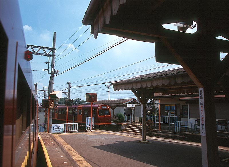 内部線と八王子線の分岐駅である日永駅。ホーム屋根に昔日の面影が残ります。