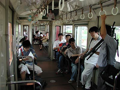 ![]() 八王子線車内にて。つり革の間隔、随分狭いですね〜 |